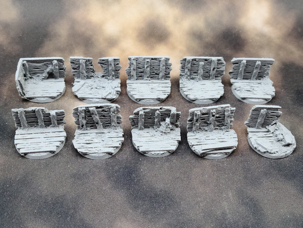 These trench bases are meant to represent the wooden board flooring used in trench warfare. Mud and dirt seep up between the boards. But with just a little work, they can be the flooring of a particularly ill kept in or the inside of an inner keep.
